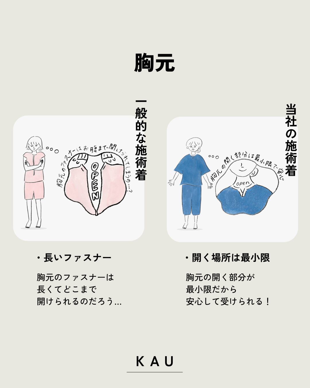 露出する部分は最小限ながらも、患者様への安心感と施術の際のストレスを感じさせません。また、シンプルながら洗練されたデザインとカラーは、どなたでも安心してご利用いただけます。